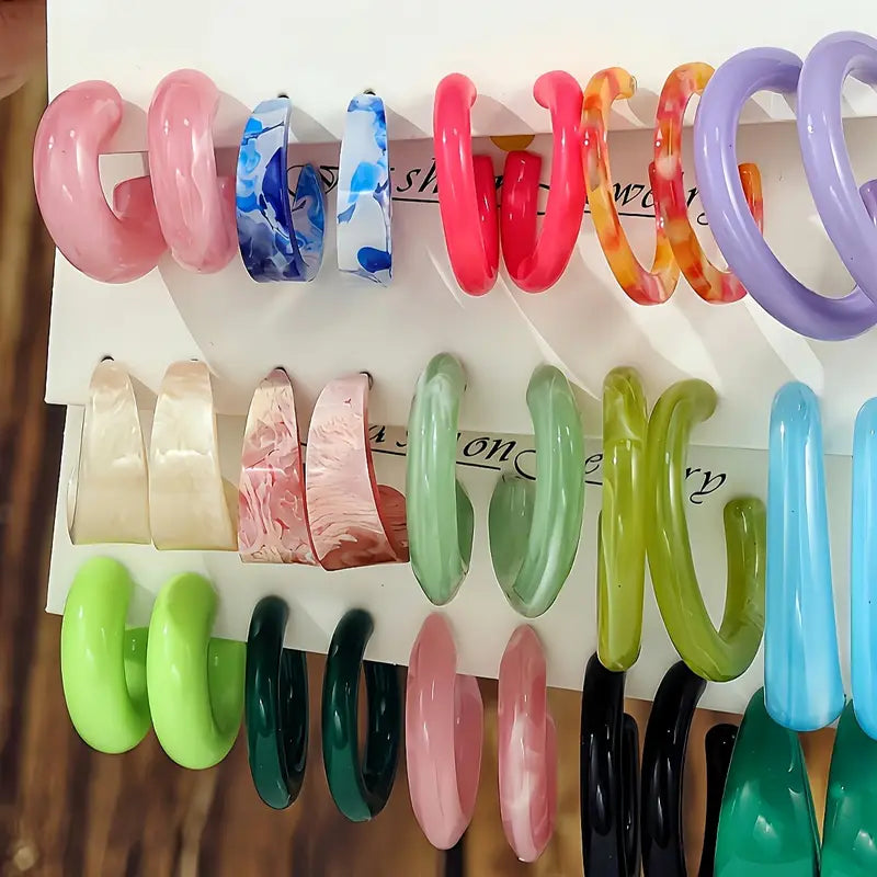 5-15 Pairs of European and American Simple Fashion Multi-color C-shaped Earring Jewelry Set