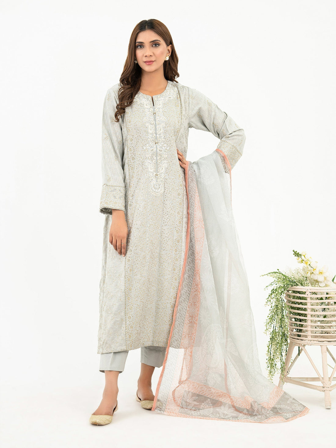 3 Piece Yarn Dyed Suit-Embroidered ( Pret)
