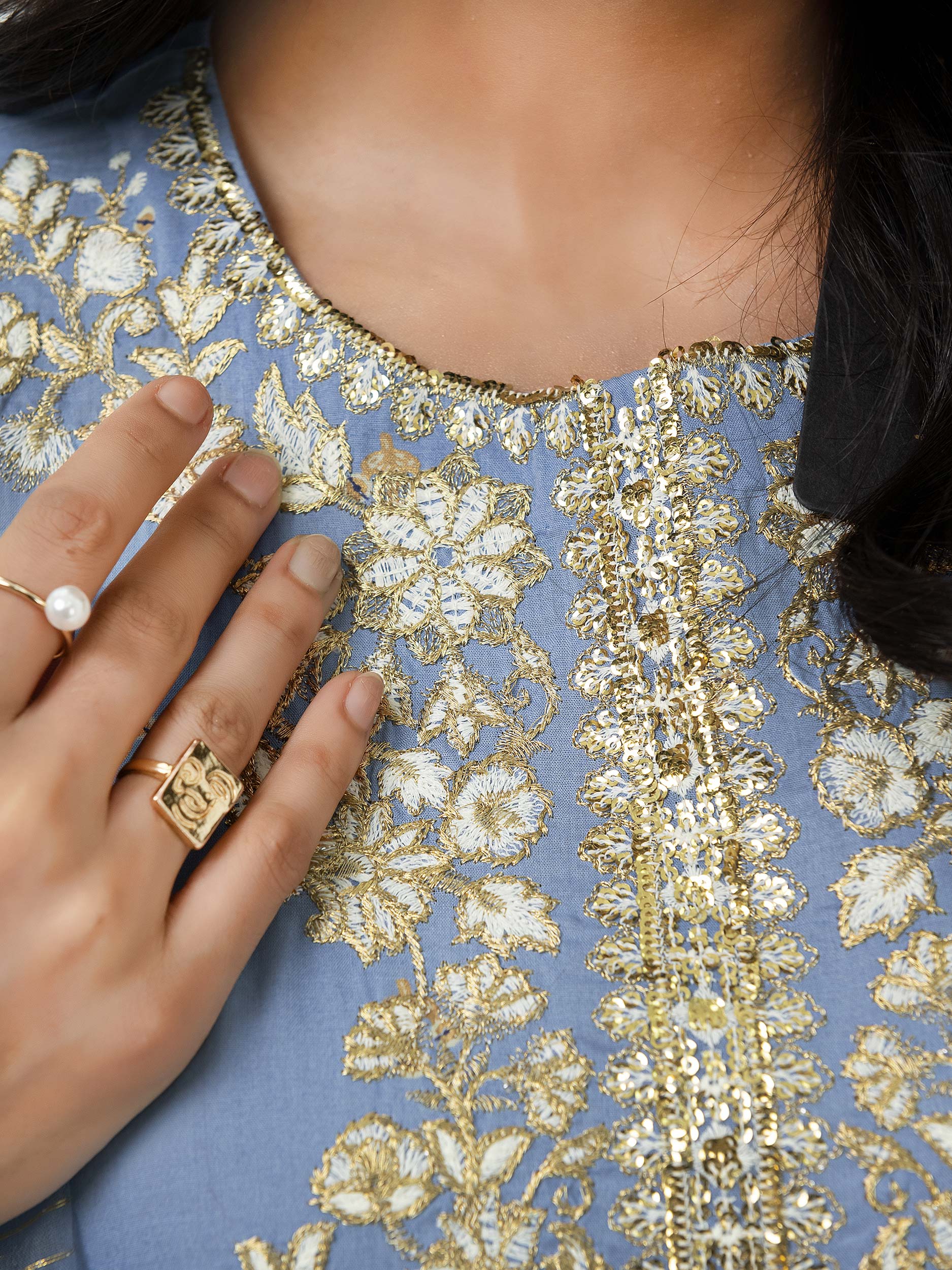 - Paneled gold paste print shirt with tilla and sequins embroidery