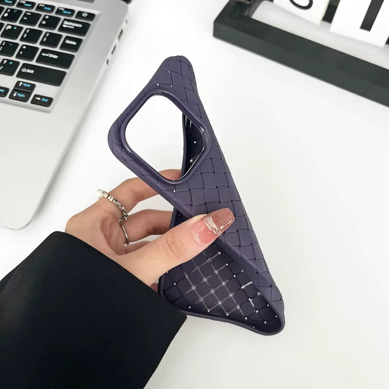 Introducing the Woven Phone Case with a luxurious leather feel. This case is designed to protect your phone while adding a touch of elegance to your style. Available in different colors, this case is perfect for those who want to make a statement with their phone accessories. The woven texture provides a comfortable grip, while the precise cutouts allow easy access to all buttons and ports. This case is compatible with wireless charging and is made of high-quality materials to ensure durability. Protect your phone in style with this premium case.